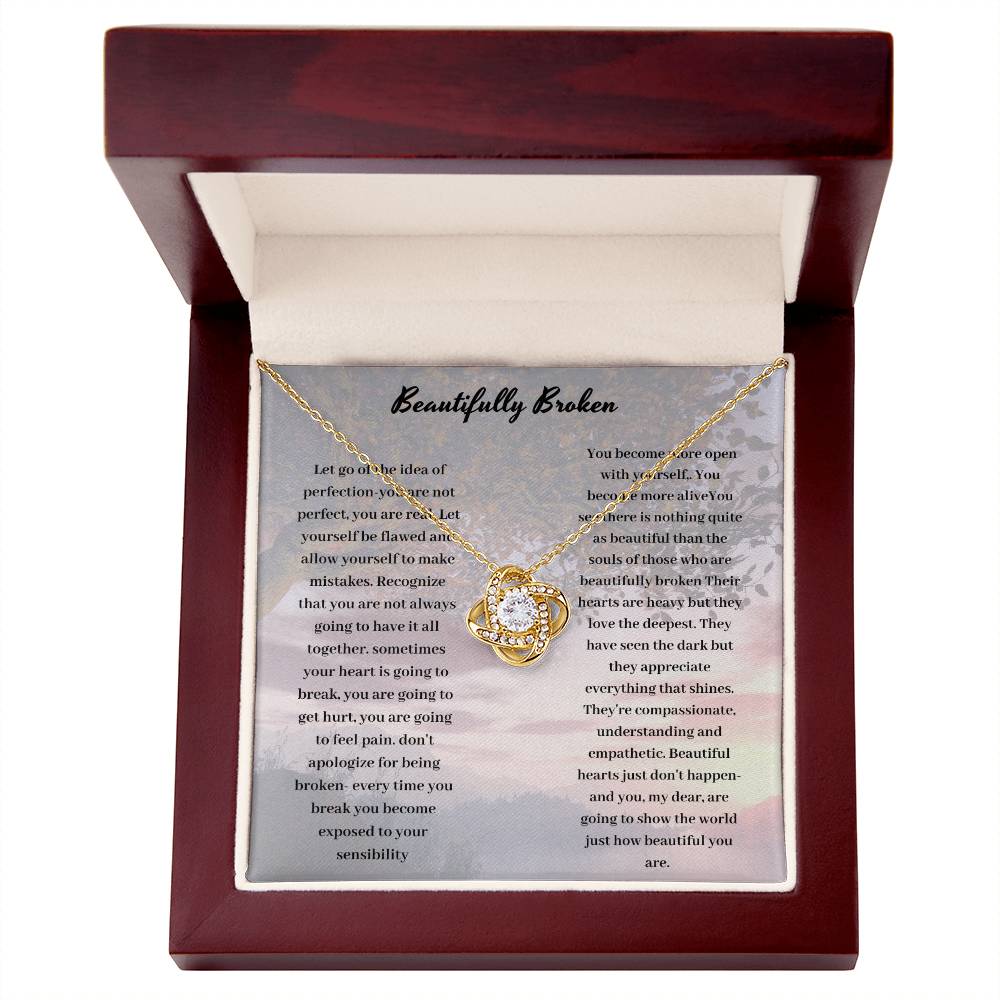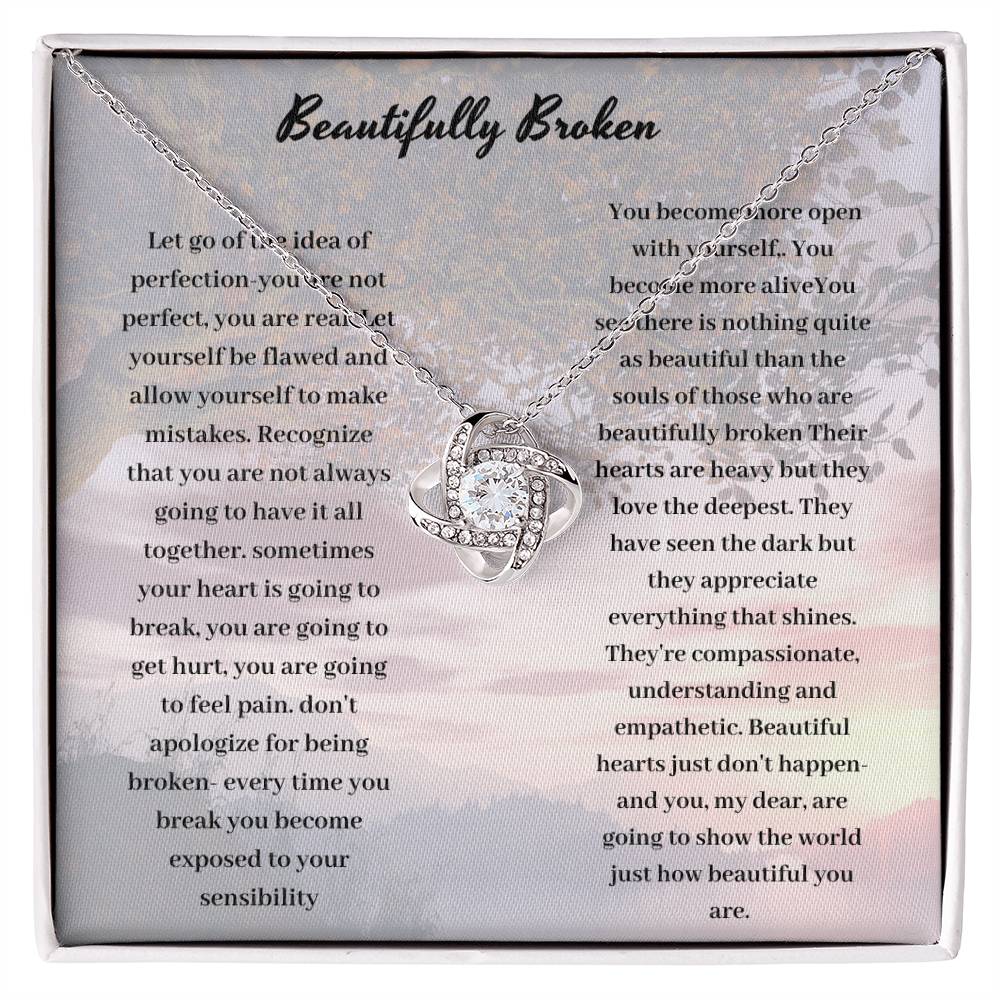 Celebrate strength in imperfection with the "Beautifully Broken" necklace. This elegant piece symbolizes resilience, faith, and grace, reminding you that beauty shines through brokenness. A perfect gift for yourself or a loved one.