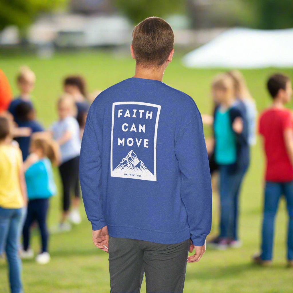 Faith Can Move Unisex Crewneck Sweatshirt - Inspirational Mountain Design